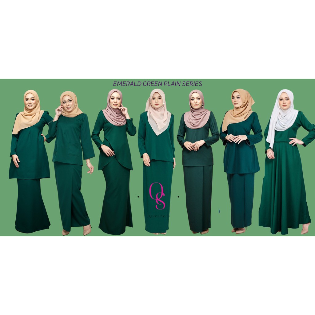 Emerald Green Basic Kurung Moden Riau Kedah Plain From S To Plussize 5xl Shopee Malaysia